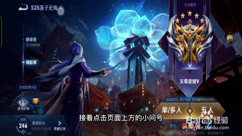 在王者荣耀游戏页面点击排位选项,接着点击页面上方的小问号。