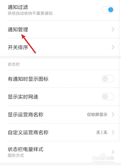 进入后,点击通知管理的选项。