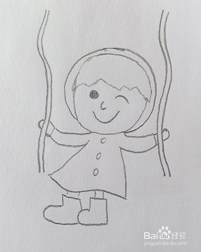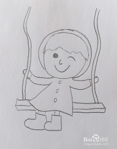 最后在小女孩屁股下面画出秋千板就画好了。