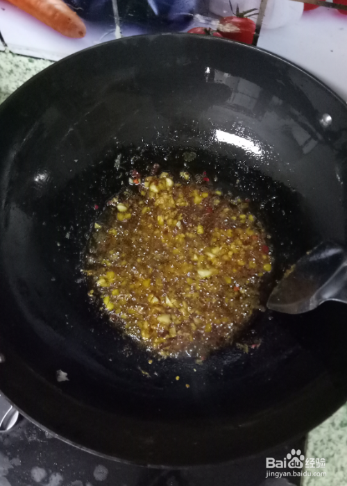 把锅洗干净,烧热,用手放在锅上端,感觉很热了,就倒油进去,油温大约在60度就可以加姜、大蒜粒,炒香后,加辣椒面炒香即可。
