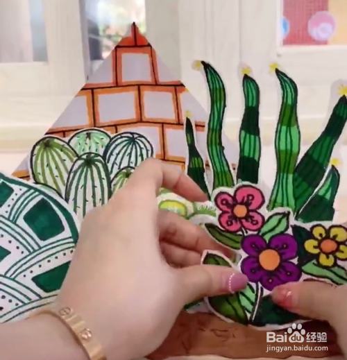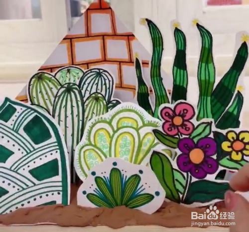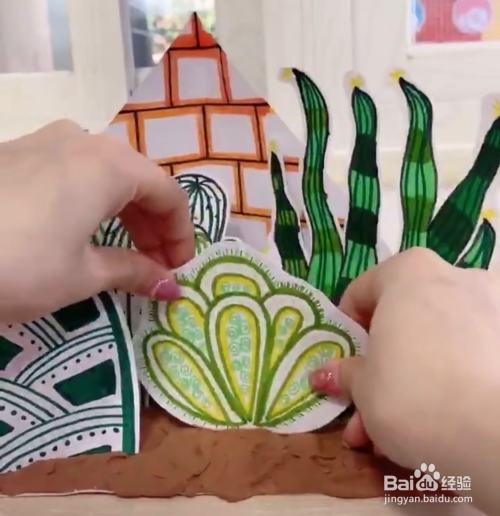 接着,我们再把细节的部分给他完成,这个非常非常卡通的植物角就做好了。