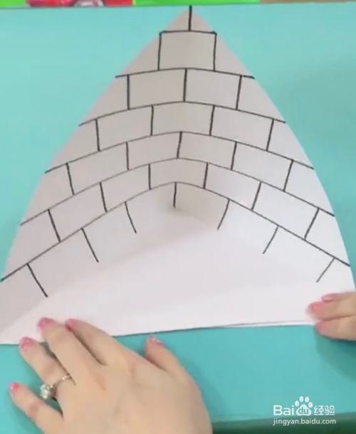 剪开的部分我们直接进行对折,然后用双面胶或者是其他的钉子进行固定。