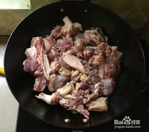 坐锅点火,锅里不放油,烧5成热时下鸭肉。