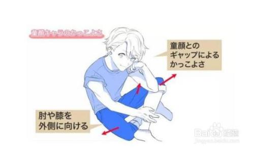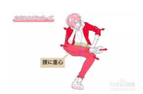 表现出这种姿态的画法的要点是,手拖着腮帮,露出笑容,以及把它的胳膊肘搭在腿上,做出大胆的样子。