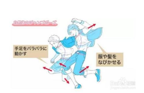 自然的跳跃姿势:这个图是一个从高处往下跳的瞬间的跳跃姿势。能够表现出来年轻清爽的帅气形象。