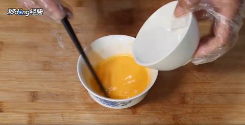 3碗中打散一个鸡蛋。