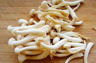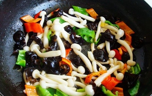 加入白玉菇翻炒均匀,最好炒出白玉菇的水分和香味,在加盐
