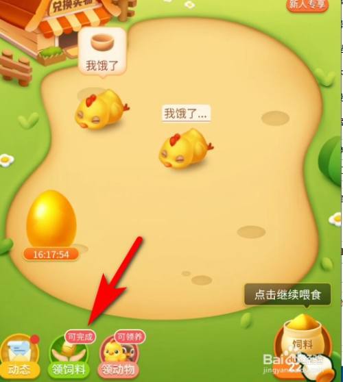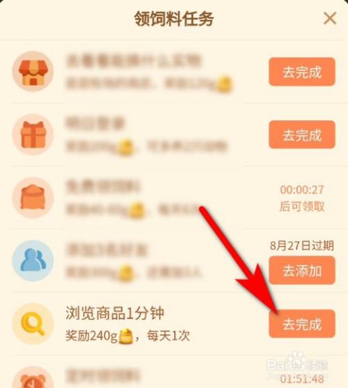 在出现的领饲料任务列表中,点击右侧的去完成按钮