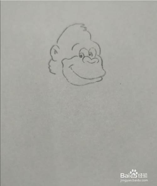 然后在猩猩的脸上边画出头顶的轮廓。