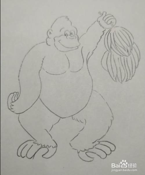 然后在大猩猩的左手上画出两串香蕉。