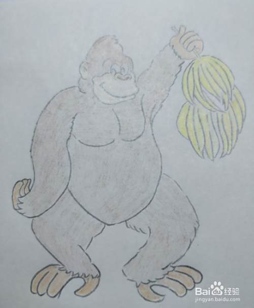 最后涂好颜色,一只可爱的大猩猩就画好啦。