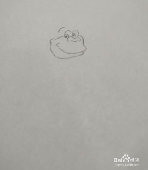 然后在眼睛下边画出一个稍微向上翻的鼻子,然后在下边再画出一个大嘴。