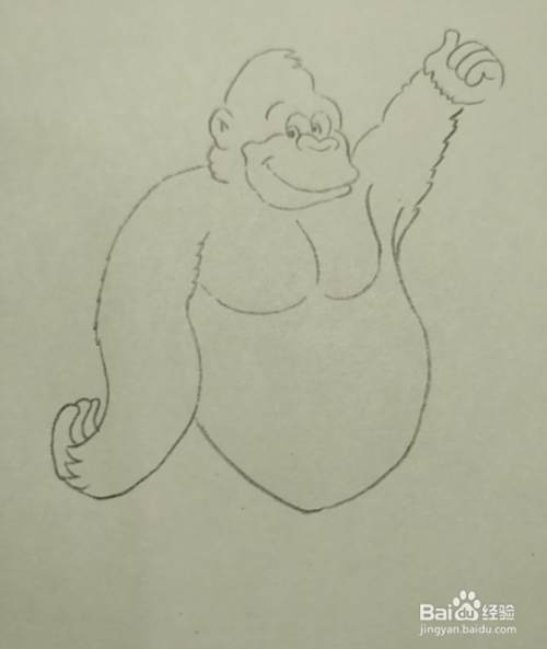 画好大猩猩的头之后,再向下画出大猩猩的两条胳膊。