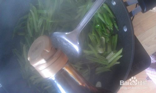 放入盐,按芹菜的多少放入,一小盘基本半勺.