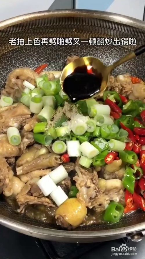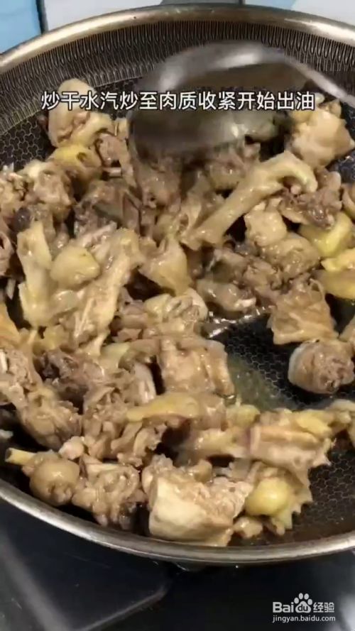锅中放油,油热放入鸡块,煸炒出油,炒至表面微黄,再放入葱姜,赶脚,干辣椒,炒出香味