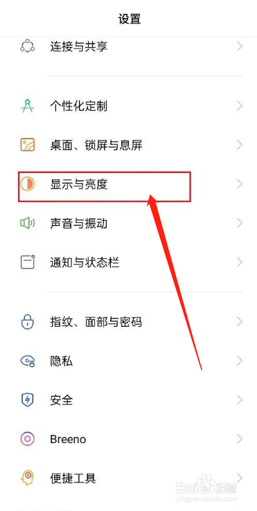 打开华为手机,点击设置功能,点击显示与亮度