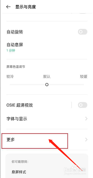 进去显示与亮度之后,然后点击更多
