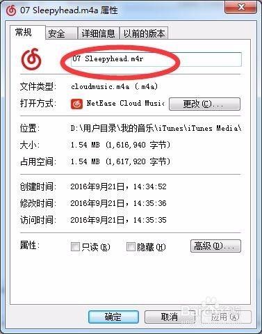 接着选中歌曲点击右键,选择最后一个属性,将歌曲的后缀改为m4r,点击确定。提示你无法使用什么的别理睬点击是。最后会看到刚刚创建的歌曲已经变成了.m4r的铃声咯
