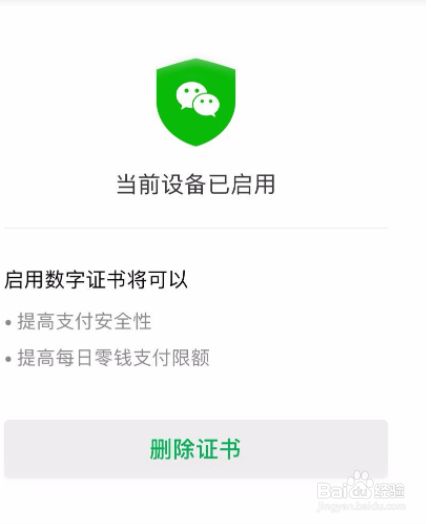 数字证书启用成功,微信支付限额就提高了。