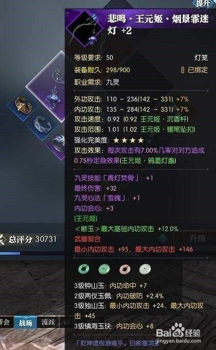 最后,紫装的评分构成,只要是紫装,就可以拆分成三个部件,一件紫装的评分,自然也是由三个配件的好坏而定,攻击速度和攻击范围配件,决定佩戴武器之后释放技能的速度和略微影响技能范围的大小。速度和范围配件 会依据品质附加两个额外属性(全随机)。