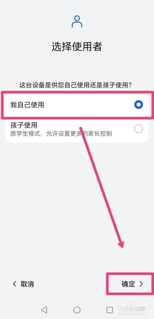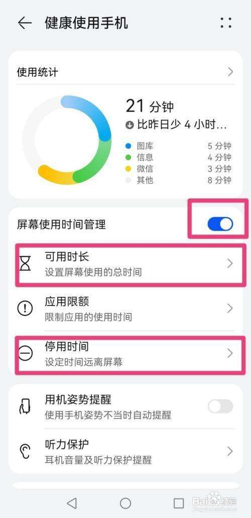 跳转进入【选择使用者】界面——选择【我自己使用】——点击右下角的【确定】——开启【屏幕使用时间管理】右侧开关,设置【可用时长】【停用时间】即可启动健康使用手机模式。