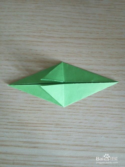 将第(7)步翻折到左边的两个小三角形再向右翻折铺平!效果如下!