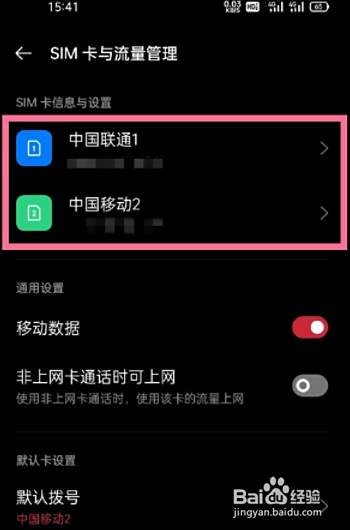 在SIM卡与流量管理页面下,点击选择一张需要开启5g的SIM卡,进入SIM卡信息与设置页面
