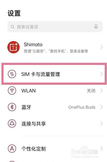 在设置功能界面中,找到并点击SIM卡与流量管理功能,打开该功能设置界面