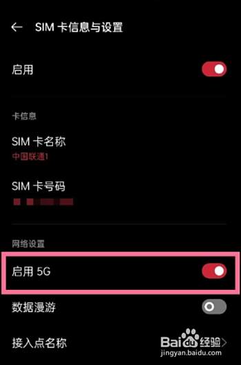 在网络设置一栏,将启用5G后面的开关开启即可