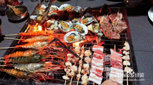 兄弟齐心完成任务,就到傍晚了,开始最振奋人心的沙滩烧烤~美食来了~