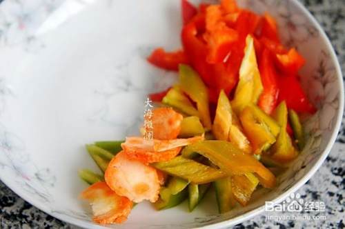 清、红椒洗净,切小块,不要太多,块也要小一点