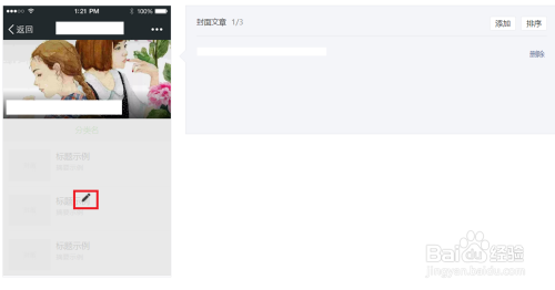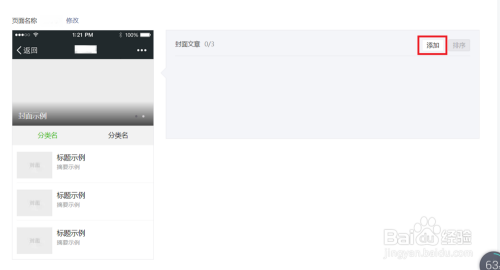 在封面文章里,点击【添加】。选择一篇文章作为封面文章。点击【确定】。