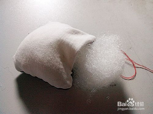 将它整个从留的口子里翻出来。再塞入适量棉花。