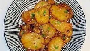 倒入土豆片进行翻炒,并加入十八鲜,盐等调料