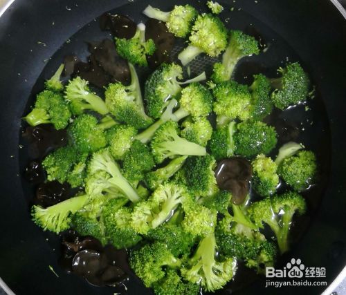 放入西兰花和木耳,撒少许盐和生抽大火翻炒均匀,关火盛出。