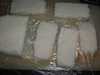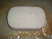 第二天早上拿出,为了防粘铺上保鲜膜,倒在保鲜膜上