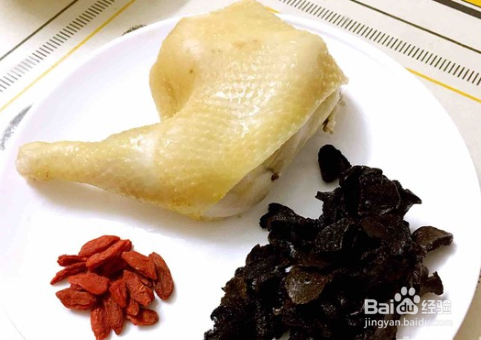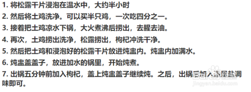 4. 再次,土鸡捞出洗净,松露捞出,枸杞冲洗干净。