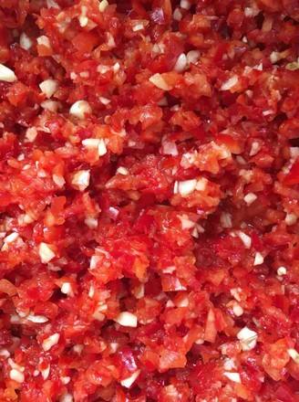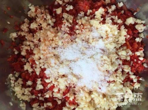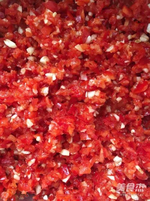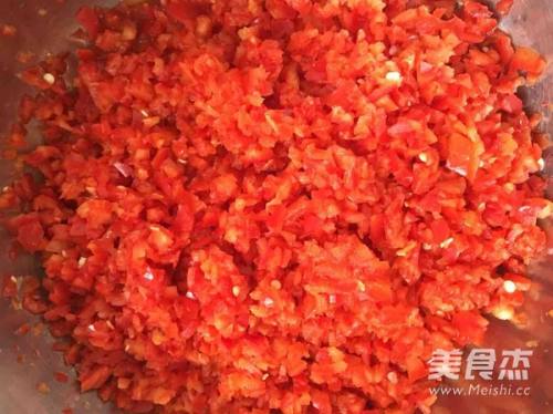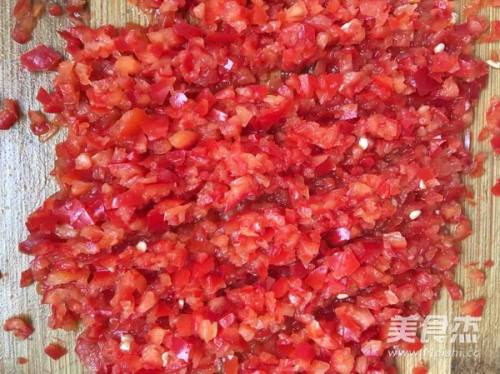 将红辣椒剁碎,放入盆里面,搅拌均匀。