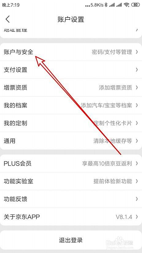 这时就会打开京东的账户设置页面,在页面中找到账户与安全的菜单项