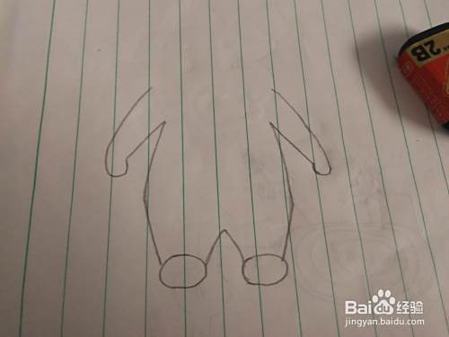 然后再继续向上画,把头部和耳朵表现出来。