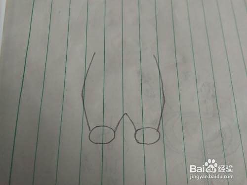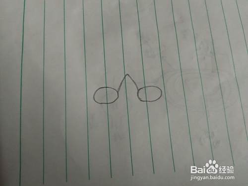 我们先在纸上画上两个椭圆形,用角连起来。然后再把上边画上括号,如图二。