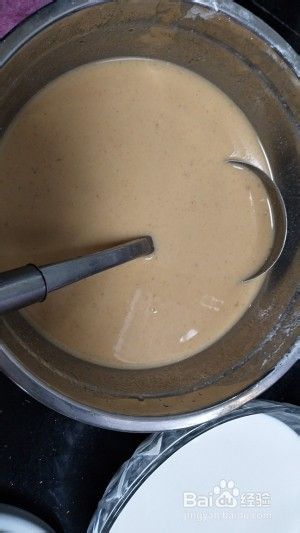 拿一个大点的容器先称量100克马蹄粉,再依次加入200克椰浆、100克牛奶、60克炼奶,用手动打蛋器打匀然后过筛(时间充裕可放置一会让其充分溶化)把粉浆中杂质过滤出来。