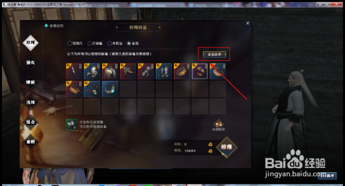 打开天工炉以后,玩家点击功能界面上的修理,然后点击全部选中。