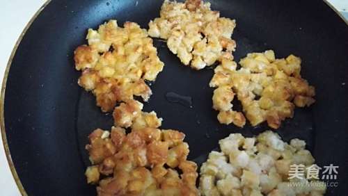 热油锅,放入拌好的红薯丁煎