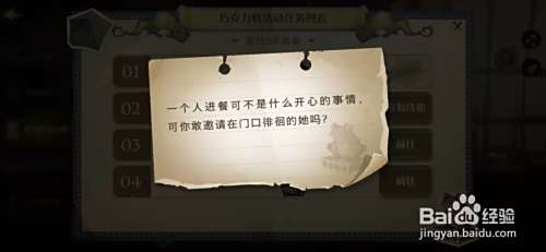 打开哈利波特魔法觉醒手游,在巧克力蛙活动界面获得线索一个人进餐。