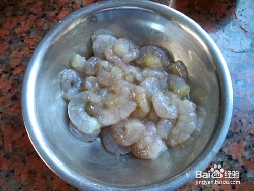 加入少许盐,糖,生抽,淀粉腌制虾仁。
