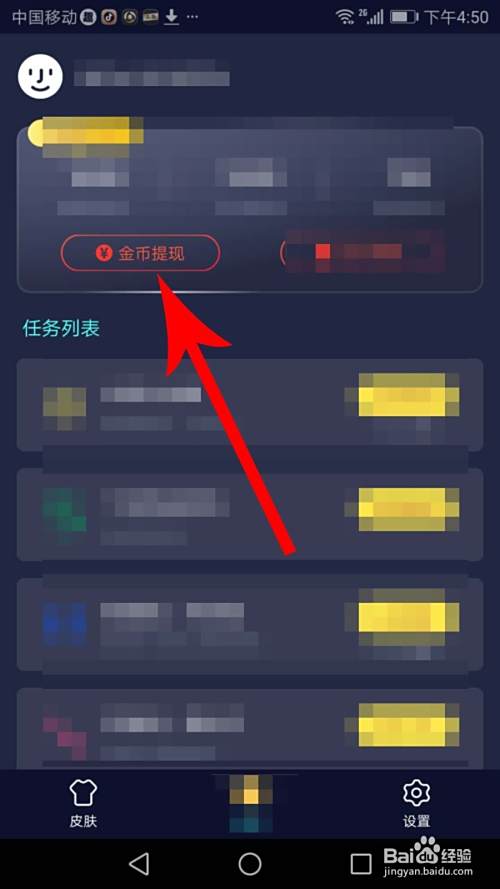 打开趣输入app首页后,在下图箭头所指位置找到“金币提现”并点击