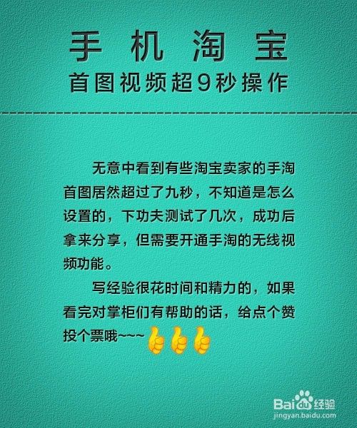无意中看到有些淘宝卖家的手淘首图居然超过了九秒,不知道是怎么设置的,下功夫测试了几次,成功后拿来分享,但需要开通手淘的无线视频功能。
