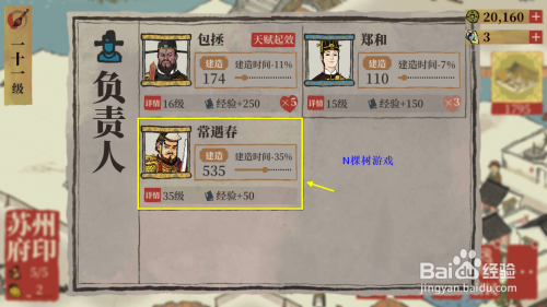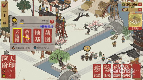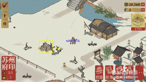 点击“苏州府印”,菜单中点击“改布局”,就能看到文星狸的祝福范围了,只要建筑只有占用这里面的任意一格,都会增产。