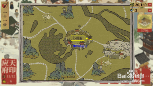文星狸雕像位于苏州府,点击“应天府印”,菜单中选择“大地图”。